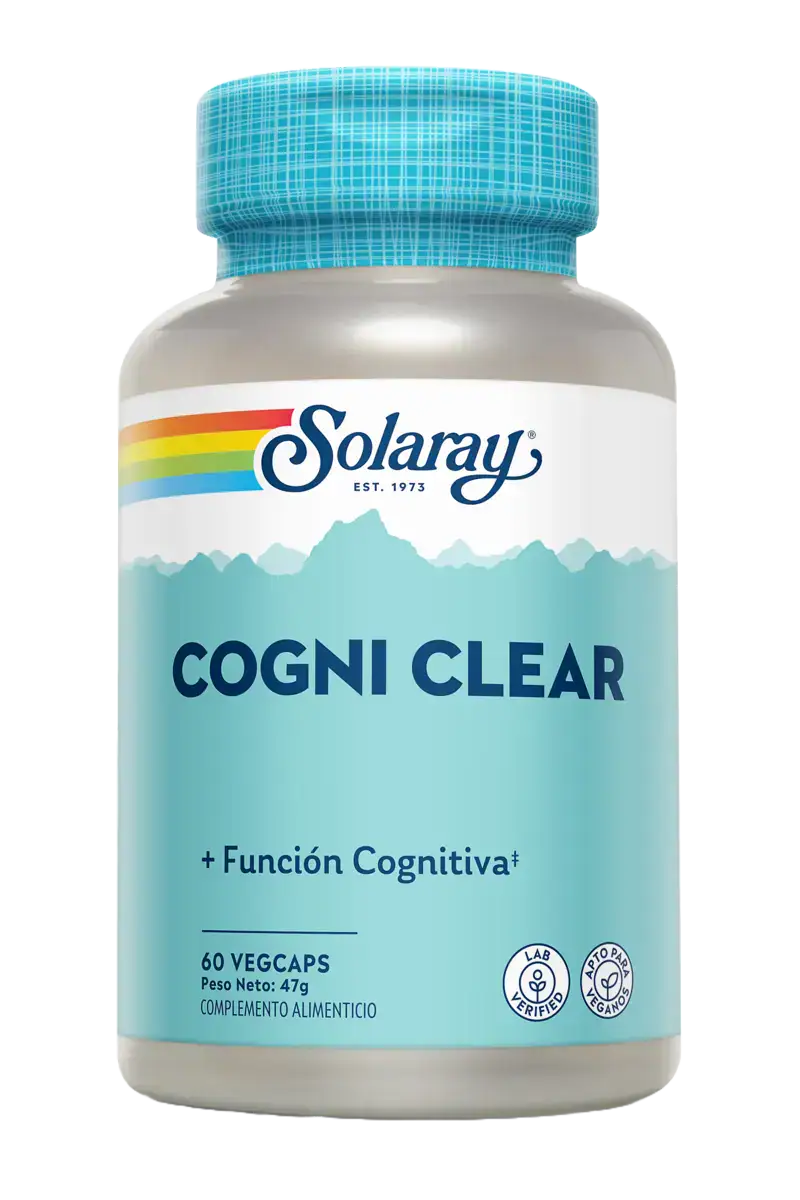 Cogni Clear de Solaray es una fórmula completa con platas con acción adaptógena y nutrientes y fitoquímicos que modulan la oxidación e inflamación, puntos clave para la óptima función cognitiva.